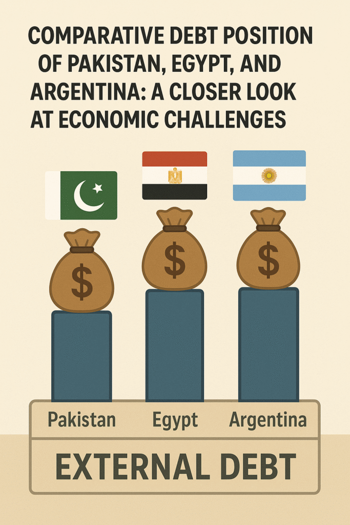 In recent years, Pakistan, Egypt, and Argentina have faced significant economic challenges, with debt management becoming a central issue. These three nations, though separated by geography, share similarities in their economic struggles, particularly in terms of external debt, fiscal deficits, inflation, and currency devaluation. This article explores the comparative debt positions of Pakistan, Egypt, and Argentina, evaluating the economic situations that have led to their current predicaments and examining the commonalities in their financial crises.