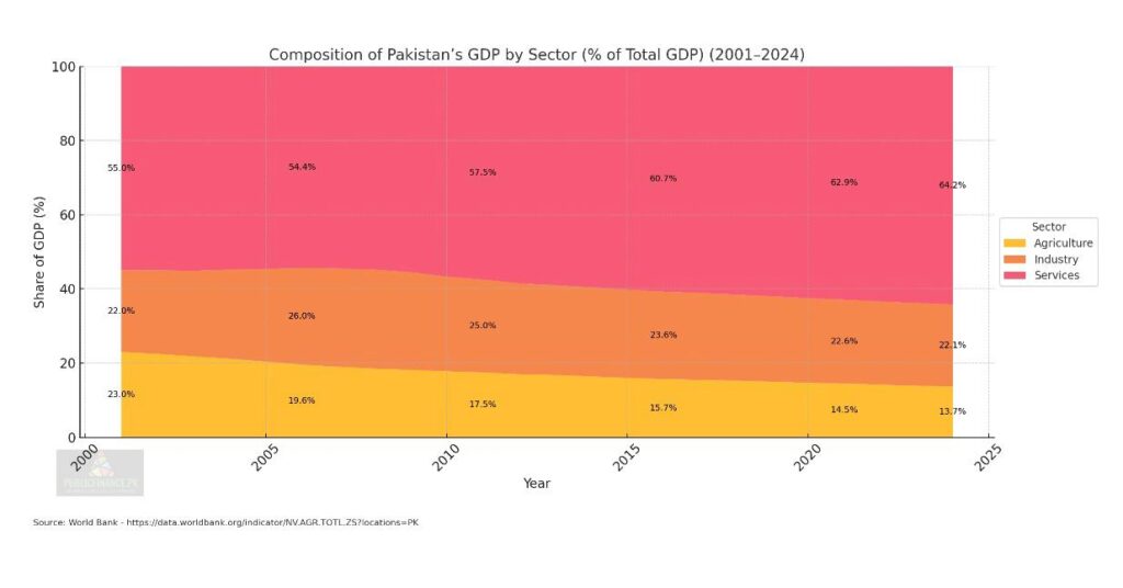 Composition of Pakistan’s GDP by Sector (%of Total GDP) (2001-2024)
