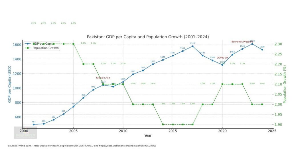 Pakistan: GDP per Capita and Population Growth (2001-2024)