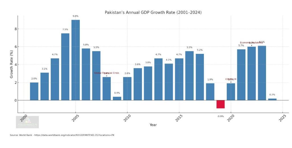 • Pakistan’s Annual GDP Growth Rate (2001-2024)